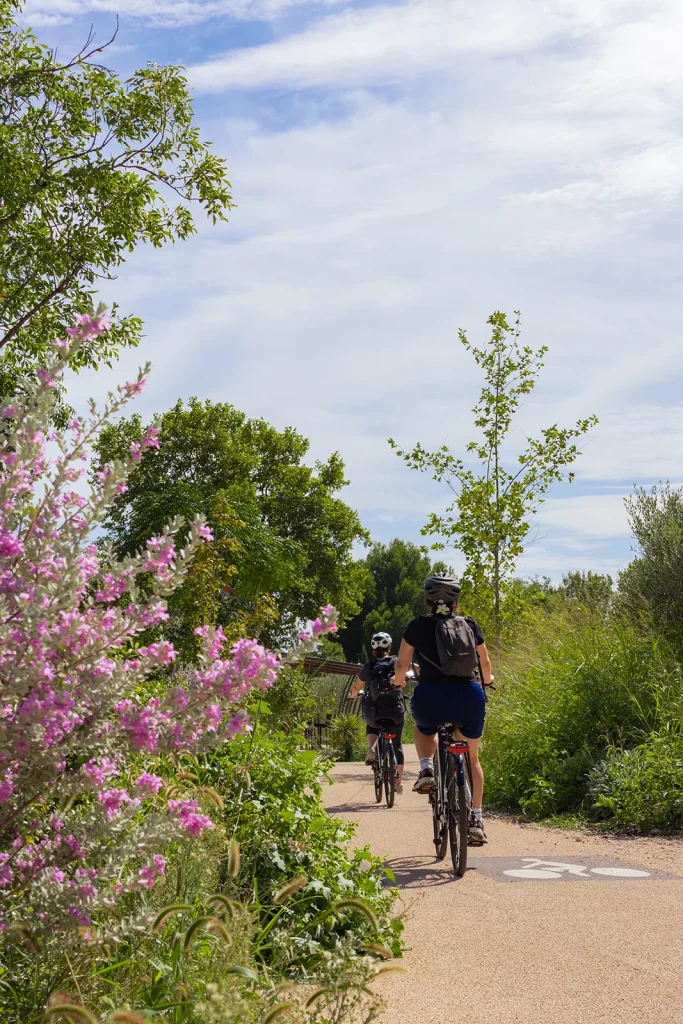 Aujourd’hui, cap sur une escapade à vélo au départ de Villeneuve lez Avignon, dans le Gard, jusqu’à L’Isle-sur-la-Sorgue, dans le Vaucluse. Cette aventure nous a permis de découvrir un itinéraire stratégique reliant deux grands axes cyclables : la ViaRhôna, qui suit le Rhône du Léman à la Méditerranée, et la Via Venaissia, qui traverse le cœur du Vaucluse sur une ancienne voie ferrée.