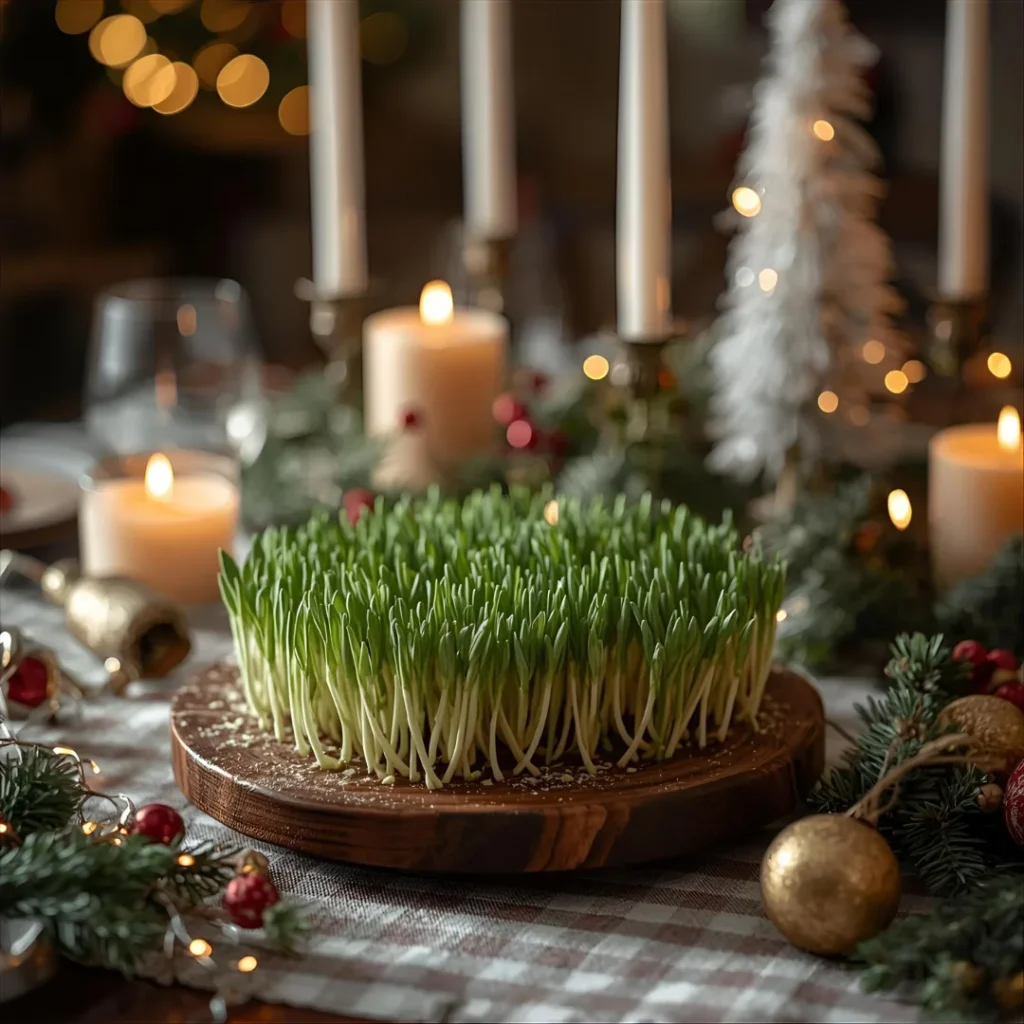 On fait tremper les grains la veille dans un bol d’eau tiède. Le 4 décembre, on dépose du coton humide dans trois coupelles, on répartit les graines et on surveille l’humidité chaque jour. Placez le tout près d’une fenêtre, arrosez légèrement, et laissez la magie opérer. Au bout d’une dizaine de jours, les tiges deviennent bien vertes. Il suffit alors d’ajouter un petit ruban rouge et les coupelles sont prêtes à rejoindre la déco de Noël.